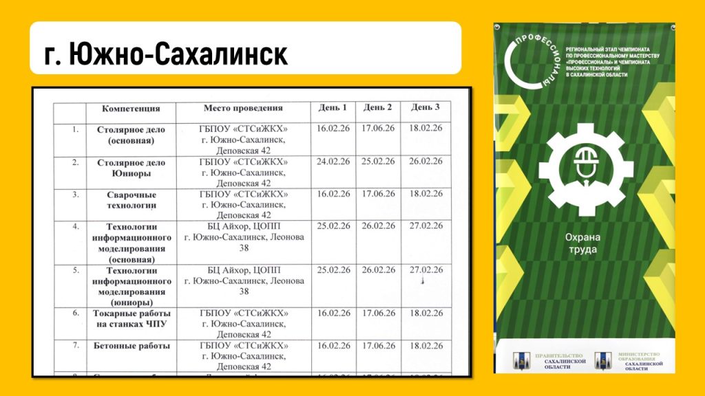 В Долинском филиале соревнования пройдут с 16 февраля по 18 февраля по компетенциям: