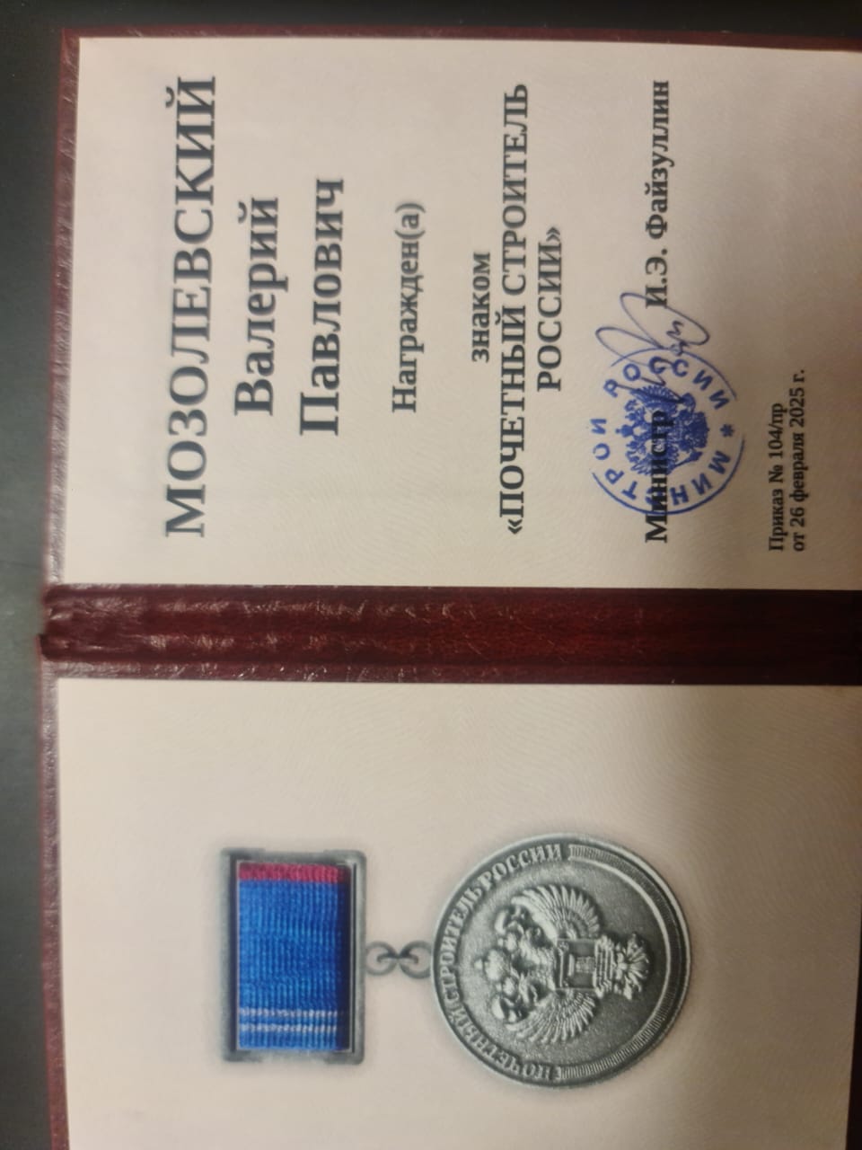 Награды и регалии Валерия Мозолевского